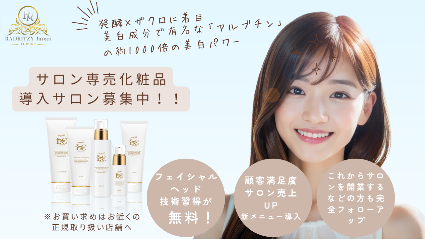 また、サロン専売化粧品ブランド「RADRITZY Japan」を導入いただいている店舗様には、商品提供だけでなく、WEB・広告・デザイン面までトータルでサポート。